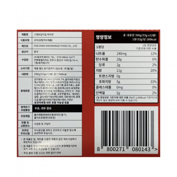 • 800 동아 그대로감자칩 마라맛 33g*12개