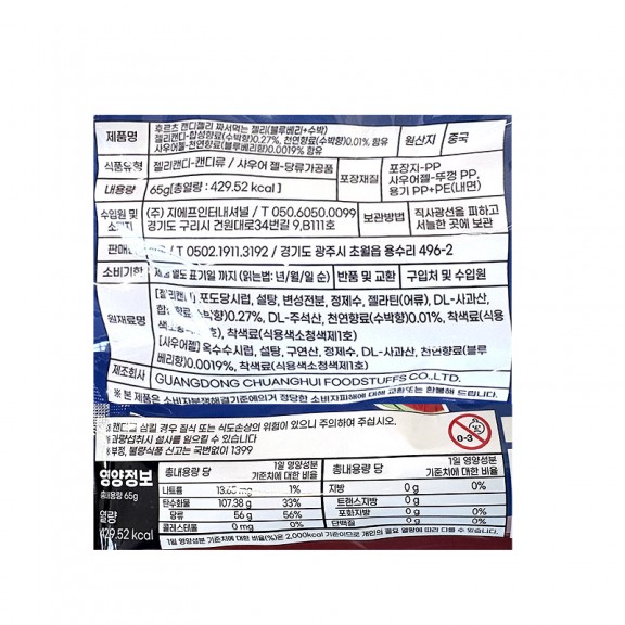 2000 후르츠 캔디젤리 짜서먹는 젤리(블루베리+수박) 65g*12개 > 젤리